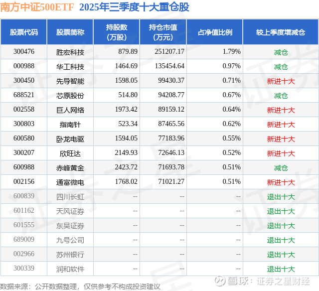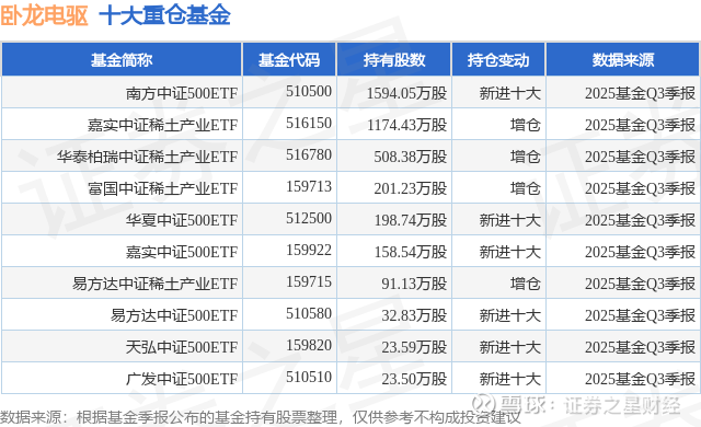 根据2025基金Q3季报公募基金重仓股数据,重仓该股的公募基金共37家,其中持有数量最多的公募基金为南方基金的南方中证500ETF。南方中证500ETF目前规模为400.98亿元,最新净值7.4397(11月3日),较上一交易日上涨0.01%,近一年上涨27.57%。该公募基金现任基金经理为罗文杰。罗文杰在任的基金产品包括:南方中证500ETF联接(LOF)A,管理时间为2013年4月22日至今,期间收益率为144.71%;南方沪深300ETF,管理时间为2013年5月17日至今,期间收益率为152.06%;南方沪深300ETF联接A,管理时间为2013年5月17日至今,期间收益率为137.65%。