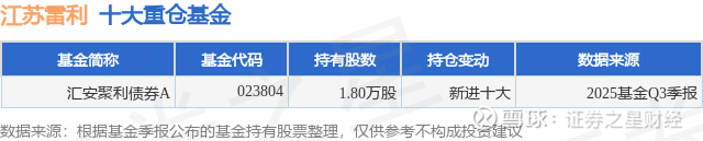 根据2025基金Q3季报公募基金重仓股数据,重仓该股的公募基金共1家,其中持有数量最多的公募基金为汇安基金的汇安聚利债券A。汇安聚利债券A目前规模为2.36亿元,最新净值1.0021(11月3日),较上一交易日上涨0.04%。该公募基金现任基金经理为张昆 柳预才。张昆在任的基金产品包括:汇安恒利39个月定开纯债债券,管理时间为2020年12月23日至今,期间收益率为7.9%;汇安盛鑫三年定开纯债债券,管理时间为2021年1月12日至今,期间收益率为13.55%;汇安裕同纯债债券A,管理时间为2022年6月22日至今,期间收益率为12.02%;汇安信泰稳健一年持有期混合A,管理时间为2024年3月26日至今,期间收益率为5.68%。柳预才在任的基金产品包括:汇安宜创量化精选混合A,管理时间为2020年12月30日至今,期间收益率为19.73%;汇安中证500增强A,管理时间为2022年12月23日至今,期间收益率为32.91%;汇安多因子混合A,管理时间为2023年5月29日至今,期间收益率为38.05%;汇安多策略混合A,管理时间为2023年6月6日至今,期间收益率为50.67%。
