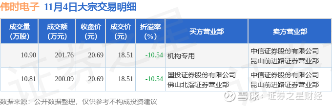 证券之星消息,11月4日伟时电子发生大宗交易,交易数据如下: