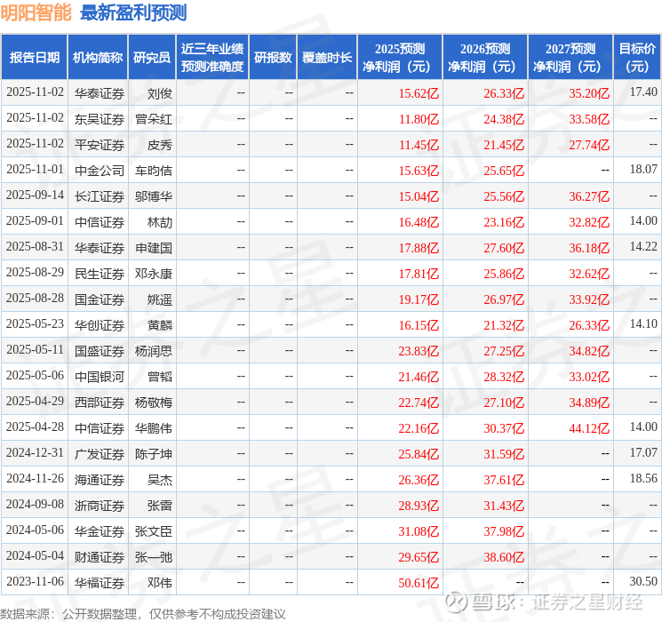 民生证券股份有限公司邓永康,王一如,朱碧野近期对明阳智能进行研究并发布了研究报告《2025年三季报点评:业绩符合预期,在手订单饱满》,给予明阳智能买入评级。