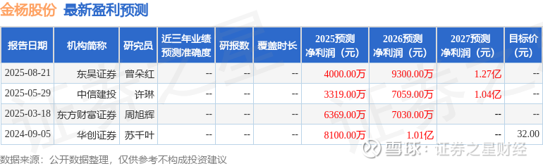 金杨股份2025年三季报显示,前三季度公司主营收入11.95亿元,同比上升22.0%;归母净利润3367.01万元,同比下降8.01%;扣非净利润2689.61万元,同比下降24.15%;其中2025年第三季度,公司单季度主营收入4.58亿元,同比上升28.81%;单季度归母净利润1440.69万元,同比上升47.11%;单季度扣非净利润1328.25万元,同比上升14.81%;负债率30.61%,投资收益-160.8万元,财务费用-714.91万元,毛利率12.07%。