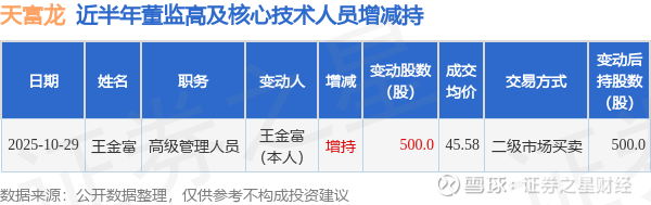 天富龙近半年内的董监高及核心技术人员增减持详情如下: