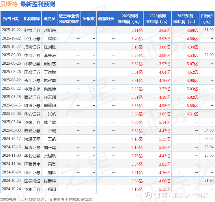 以下是详细的盈利预测信息:
