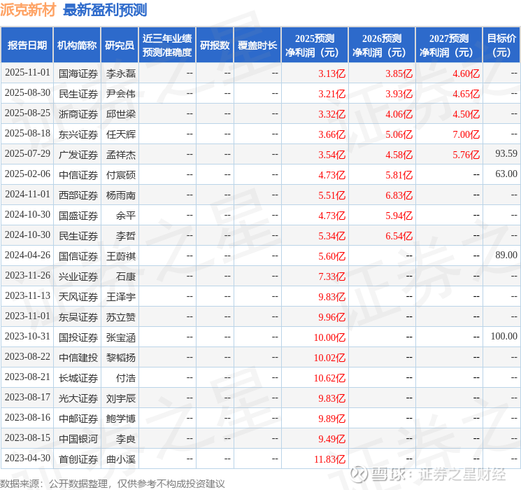 以下是详细的盈利预测信息: