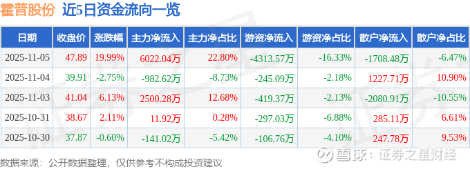 11月5日的资金流向数据方面,主力资金净流入6022.04万元,占总成交额22.8%,游资资金净流出4313.57万元,占总成交额16.33%,散户资金净流出1708.48万元,占总成交额6.47%。