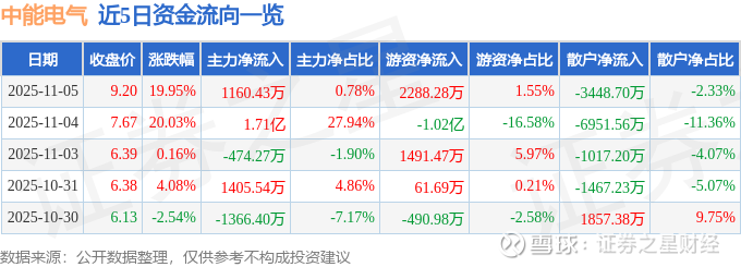 证券之星消息,中能电气11月5日涨停收盘,收盘价9.2元。该股于10点15分涨停,未打开涨停,截止收盘封单资金为1.36亿元,占其流通市值3.83%。