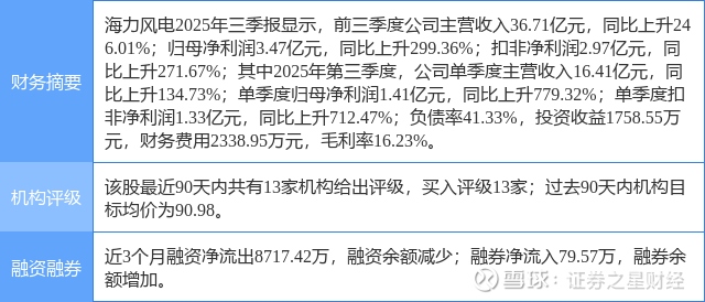 2025年10月28日,东吴证券研究员曾朵红,郭亚男,胡隽颖发布了对海力风电的研报《2025年三季报点评:导管架盈利能力短期承压,看好26年盈利拐点》,该研报对海力风电给出“买入”评级。证券之星数据中心根据近三年发布的研报数据计算,该研报作者对此股的盈利预测准确度为75.3%。