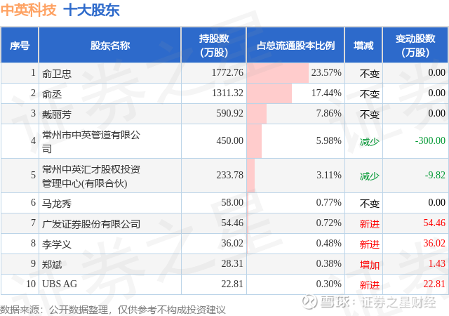 根据中英科技2025年三季报公布的十大股东详情如下: