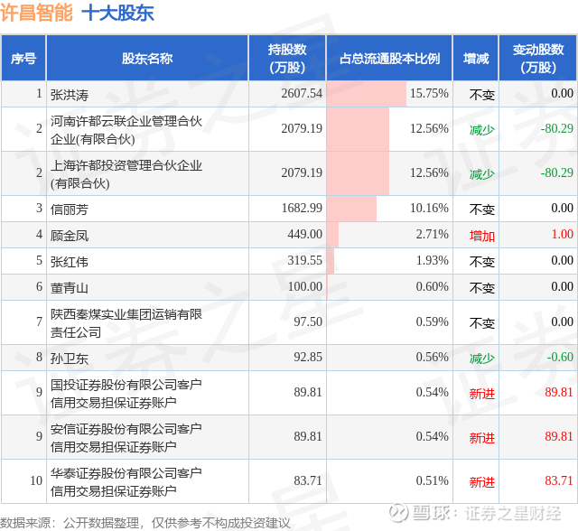 根据许昌智能2025年三季报公布的十大股东详情如下: