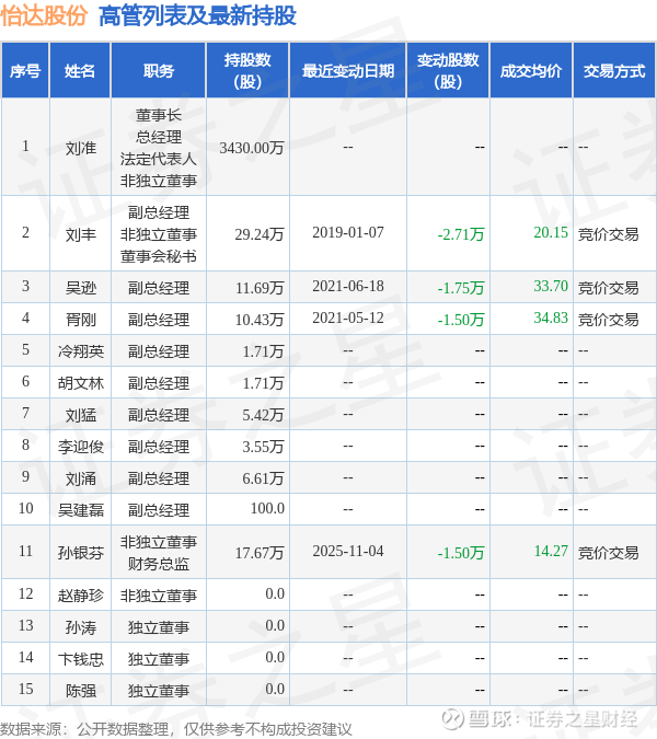 怡达股份近半年内的董监高及核心技术人员增减持详情如下: