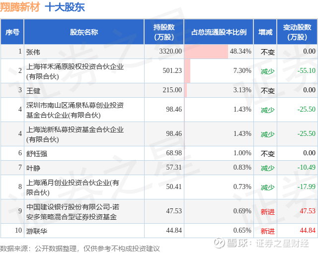 根据翔腾新材2025年三季报公布的十大股东详情如下: