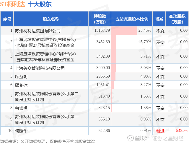 根据ST柯利达2025年三季报公布的十大股东详情如下: