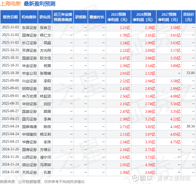 华龙证券股份有限公司孙伯文,王佳琪近期对上海电影进行研究并发布了研究报告《2025年三季报业绩点评报告:核心业务驱动业绩释放,关注IP布局》,给予上海电影增持评级。