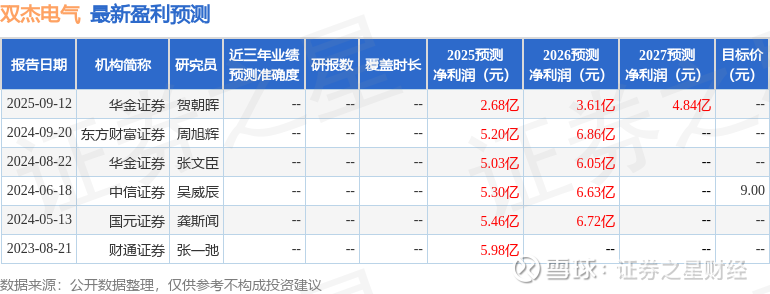 以下是详细的盈利预测信息: