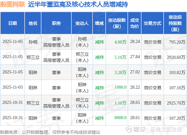 殷图网联近半年内的董监高及核心技术人员增减持详情如下: