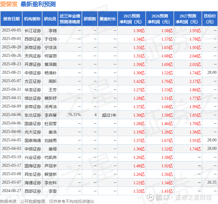 开源证券股份有限公司黄泽鹏,姚慕宇近期对爱婴室进行研究并发布了研究报告《公司信息更新报告:2025Q3主业门店稳健扩张,万代合作持续推进》,给予爱婴室买入评级。
