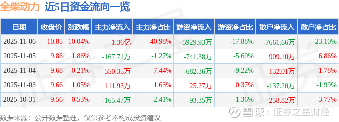 11月6日的资金流向数据方面,主力资金净流入1.36亿元,占总成交额40.98%,游资资金净流出5929.93万元,占总成交额17.88%,散户资金净流出7661.66万元,占总成交额23.1%。
