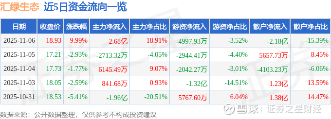 证券之星消息,汇绿生态11月6日涨停收盘,收盘价18.93元。该股于13点8分涨停,3次打开涨停,截止收盘封单资金为4041.18万元,占其流通市值0.35%。