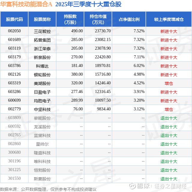 根据2025基金Q3季报公募基金重仓股数据,重仓该股的公募基金共5家,其中持有数量最多的公募基金为华富基金的华富科技动能混合A。华富科技动能混合A目前规模为10.01亿元,最新净值1.736(11月5日),较上一交易日上涨0.6%,近一年上涨102.57%。该公募基金现任基金经理为沈成。沈成在任的基金产品包括:华富新能源股票型发起式A,管理时间为2021年12月29日至今,期间收益率为16.92%;