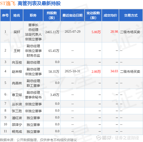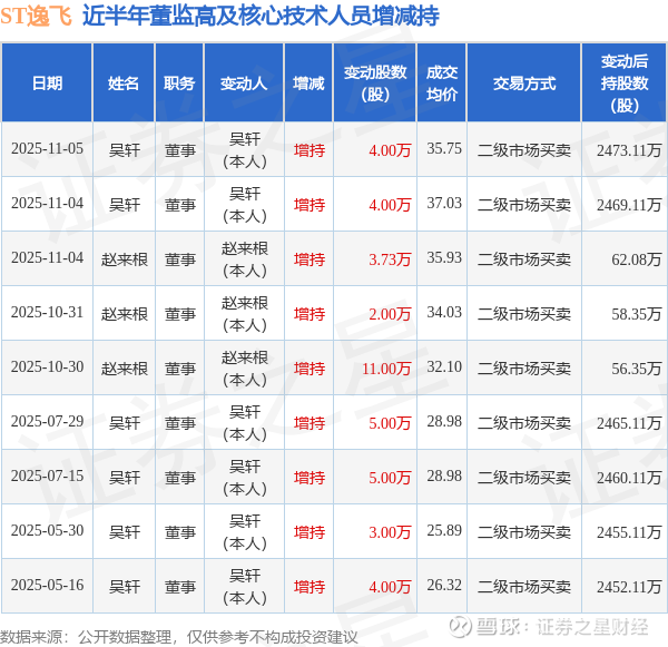 ST逸飞近半年内的董监高及核心技术人员增减持详情如下: