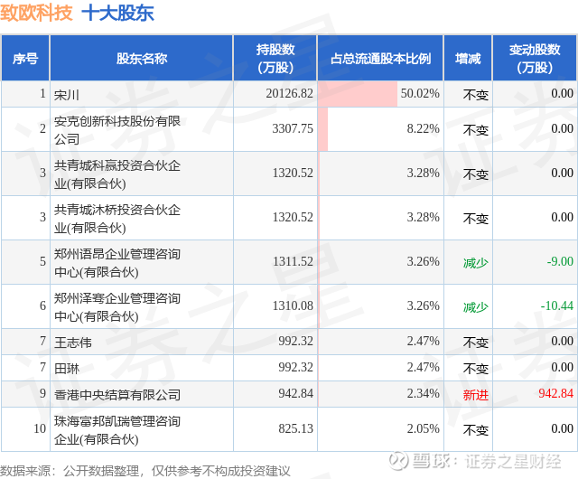 根据致欧科技2025年三季报公布的十大股东详情如下: