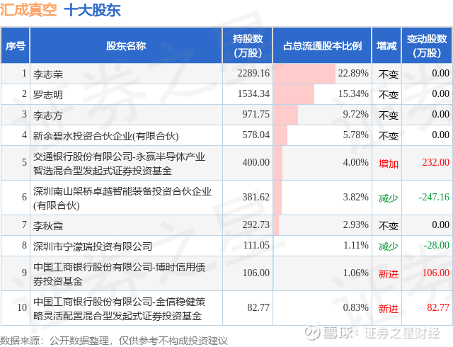 根据汇成真空2025年三季报公布的十大股东详情如下: