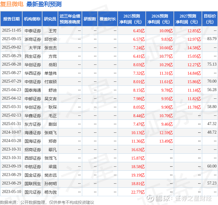 以下是详细的盈利预测信息: