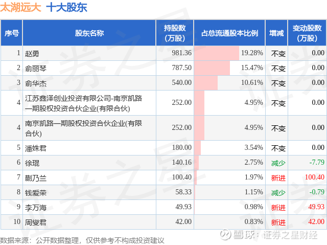 根据太湖远大2025年三季报公布的十大股东详情如下: