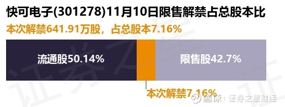证券之星消息,根据市场公开信息整理,快可电子(301278)于11月10日将有641.91万股限售股份解禁,为公司定向增发机构配售股份,占公司总股本7.16%。(本次数据根据历史公告整理得出,实际情况以上市公司最新公告为准)最近一年内,该股累计解禁992.55万股,占总股本的11.06%。本次解禁后,公司还有3830.62万股限售股份,占总股本42.7%。具体如下图所示: