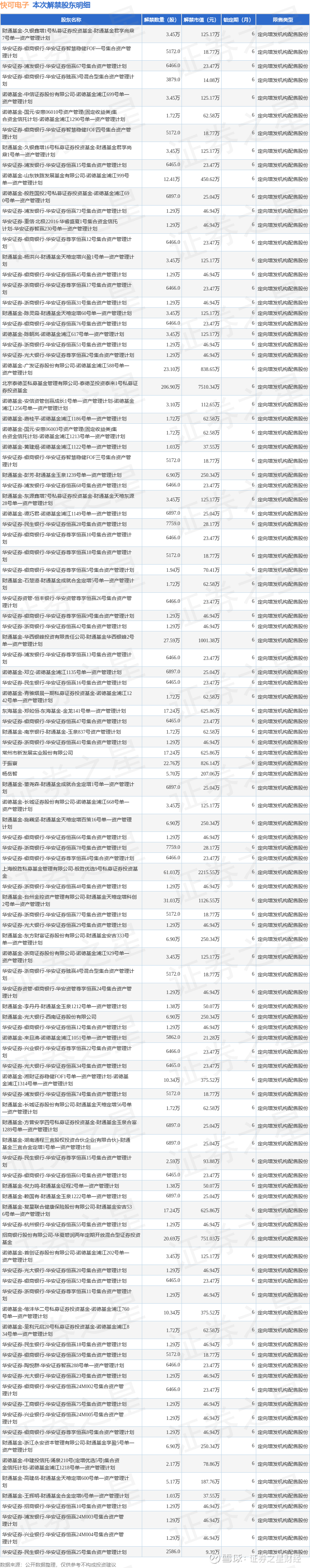 本次解禁涉及股东明细见下表: