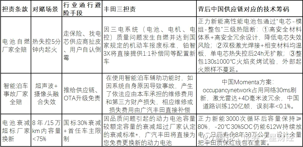 小结:广汽丰田的三担责相当于对赌,把原本属于保险、属于用户、属于运气的不确定性,全部吸收进自己承诺。底气是什么?是强大的中国供应链!