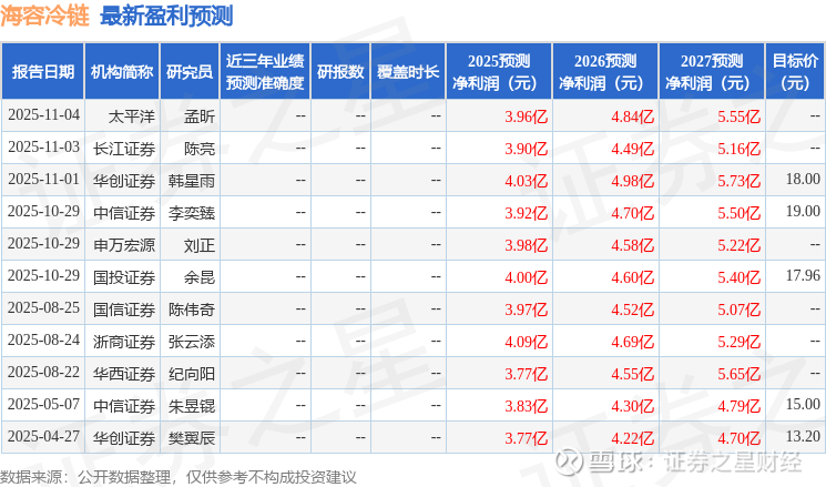 以下是详细的盈利预测信息: