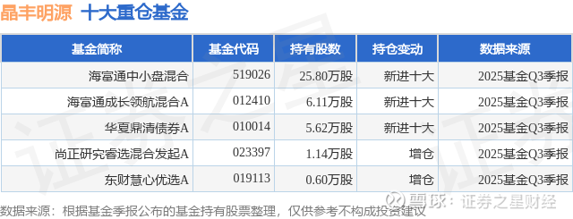 根据2025基金Q3季报公募基金重仓股数据,重仓该股的公募基金共5家,其中持有数量最多的公募基金为海富通基金的海富通中小盘混合。海富通中小盘混合目前规模为7.14亿元,最新净值2.2364(11月7日),较上一交