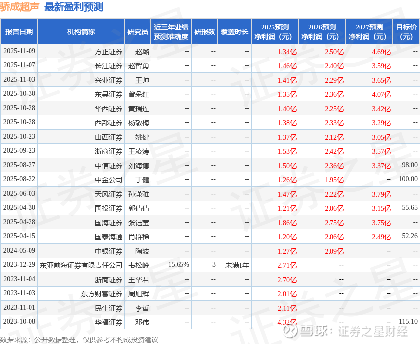 以下是详细的盈利预测信息: