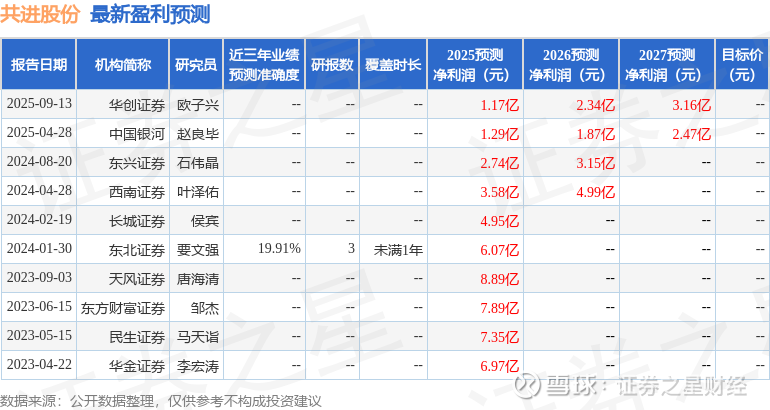 以下是详细的盈利预测信息: