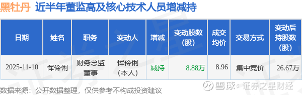 黑牡丹近半年内的董监高及核心技术人员增减持详情如下: