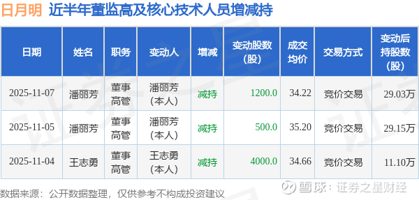 日月明近半年内的董监高及核心技术人员增减持详情如下: