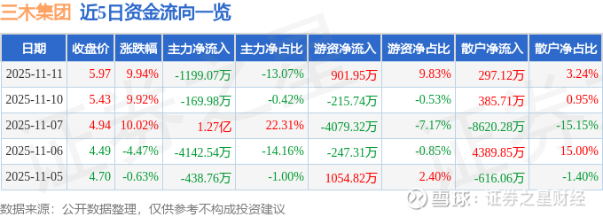 证券之星消息,三木集团11月11日涨停收盘,收盘价5.97元。该股于9点25分涨停,未打开涨停,截止收盘封单资金为1.59亿元,占其流通市值5.74%。