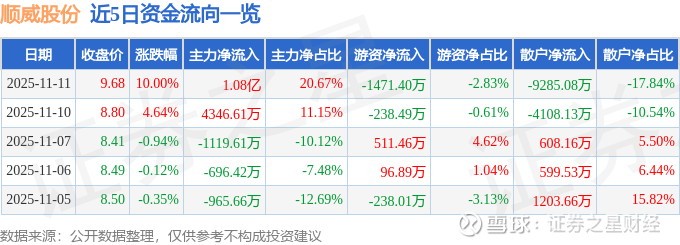 证券之星消息,顺威股份11月11日涨停收盘,收盘价9.68元。该股于13点3分涨停,未打开涨停,截止收盘封单资金为1.12亿元,占其流通市值1.61%。