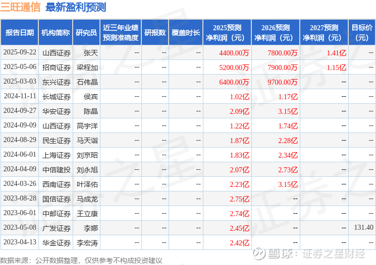 以下是详细的盈利预测信息: