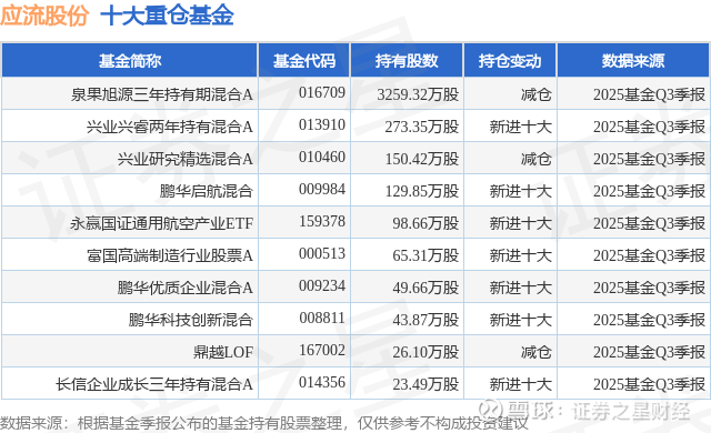 重仓应流股份的前十大公募基金请见下表: