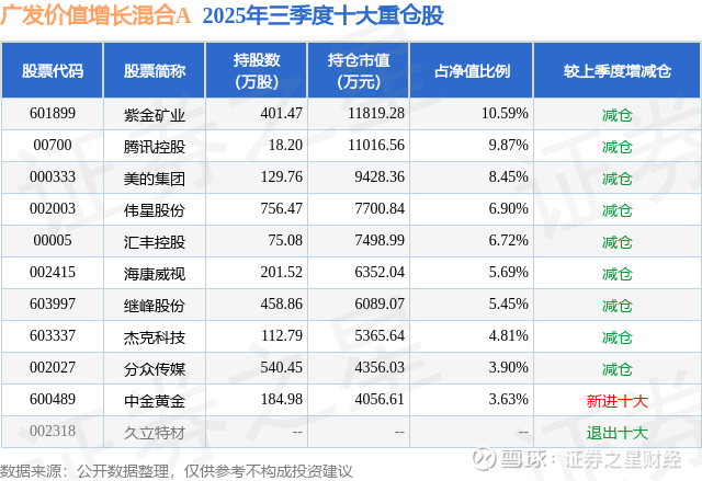 广发价值增长混合A的前十大重仓股如下: