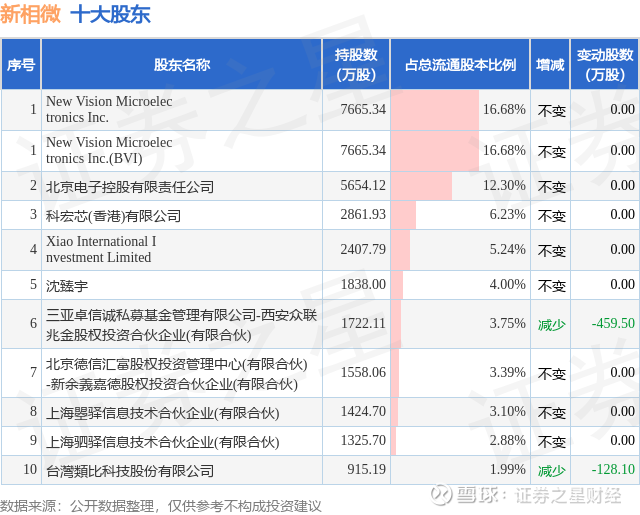 证券之星消息,11月12日新相微发布公告《新相微:新相微持股5%以上股东减持股份结果公告》,其股东科宏芯(香港)有限公司于2025年11月5日至2025年11月12日间合计减持354.77万股,占公司目前总股本的0.772%,变动期间该股股价上涨14.36%,截止11月12日收盘报24.77元。