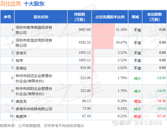 根据贝仕达克2025年三季报公布的十大股东详情如下: