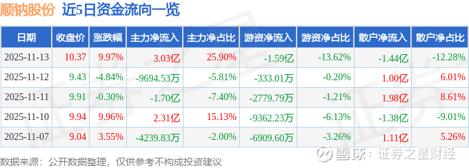 证券之星消息,顺钠股份11月13日涨停收盘,收盘价10.37元。该股于9点56分涨停,未打开涨停,截止收盘封单资金为1.11亿元,占其流通市值1.56%。