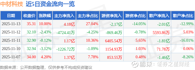 11月13日的资金流向数据方面,主力资金净流入4.18亿元,占总成交额27.04%,游资资金净流出2.17亿元,占总成交额14.05%,散户资金净流出2.01亿元,占总成交额12.99%。