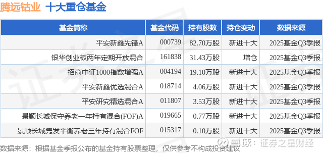 根据2025基金Q3季报公募基金重仓股数据,重仓该股的公募基金共7家,其中持有数量最多的公募基金为平安基金的平安新鑫先锋A。平安新鑫先锋A目前规模为8.51亿元,最新净值2.621(11月12日),较上一交易日下跌0.42%,近一年上涨22.77%。该公募基金现任基金经理为张晓泉。张晓泉在任的基金产品包括:平安研究精选混合A,管理时间为2021年5月25日至今,期间收益率为27.13%;平安研究优选混合A,管理时间为2023年3月21日至今,期间收益率为32.25%;平安新鑫优选混合A,管理时间为2023年8月15日至今,期间收益率为45.48%。