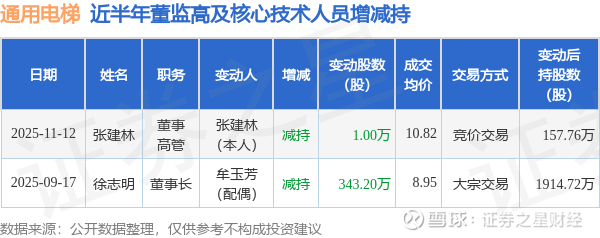 通用电梯近半年内的董监高及核心技术人员增减持详情如下: