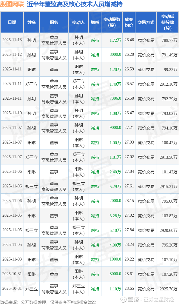 殷图网联近半年内的董监高及核心技术人员增减持详情如下: