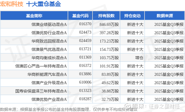 重仓宏和科技的前十大公募基金请见下表: